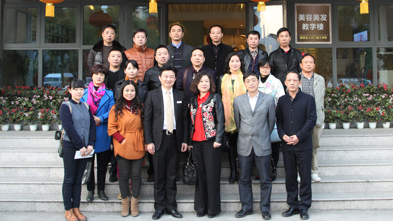 2014年11月13日下午2时许,一辆中巴车满载着远道而来的湖北客人停在了金莎苏州学校的大院内,来自武汉市武昌区人社局刘副局长、安副局长、武汉天资美容美发培训学校雷三林校长等一行18人在孙骏飞校长引领下,参观了校区的美容、美发、化妆、美甲、摄影的每一间教室,分别询问了老师和同学们在金莎学校的工作、学习、生活情况。在会议室,孙校长向各位来宾详细介绍了金莎连锁学校的发展历程、课程设置、师资培养、校务管理、招生模式、学生就业等方面的情况,进行了长达了两个多小时的交流。武昌人社局的领导对金莎学校的发展规模、校园文化、办学方略等给予了充分的肯定和褒奖,各位兄弟学校的校长们也表示了由衷的赞赏。湖北同行们来到金莎同样给了我们激励,共同为美容美发化妆职业培训事业贡献自己的力量!