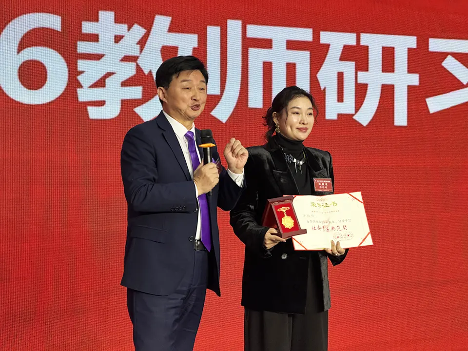 研习会总结会上,金莎美业集团向南通分校缪培培校长颁发“社会责任典范奖”奖章及荣誉证书;向获评“金莎连锁学校2025年度优秀教师”荣誉的姚良舟、周峰、夏冉、胡永芳、徐坤、李方远、张用刚、郝允晶、王思展、王雅茹、李玉环、白先飞、马珍珠、向成艳、才莉等15名老师颁发了奖杯和证书。