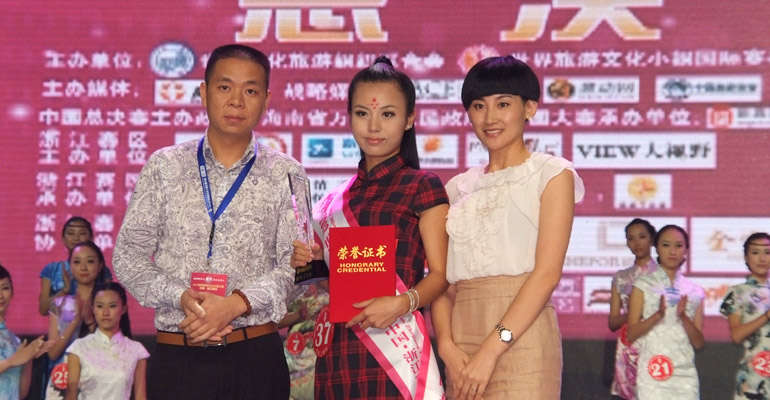 2012年9月28日晚,由杭州金莎美容美发职业技能培训学校、浙江省婚庆行业协会、杭州电视台综合生活频道、大视野杂志、新蓝网·浙江网络广播电视台、FM104.5浙江女主播电台联合主办的2012第十四届西湖国际博览会核心项目“杭州婚庆产业博览会”子项目 “爱情使者”暨“爱情之都”杯2012世界旅游文化小姐大赛中国·浙江赛区总决赛暨“瑞纺· 中国婚庆用品城之夜”颁奖盛典在杭州电视台1号演播厅完美落下帷幕。
