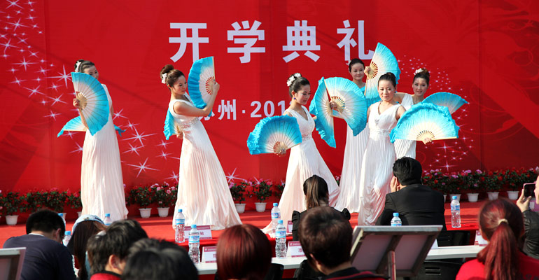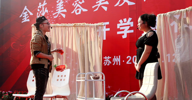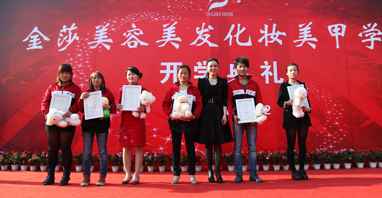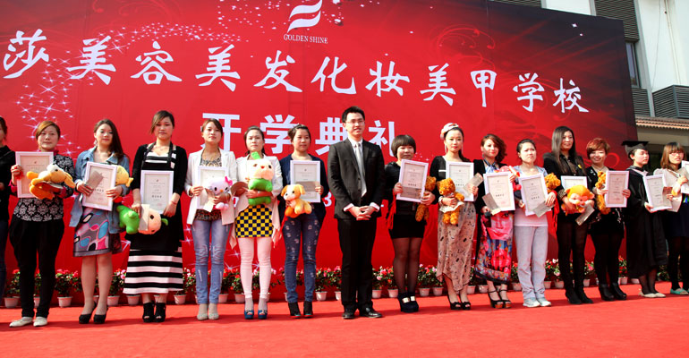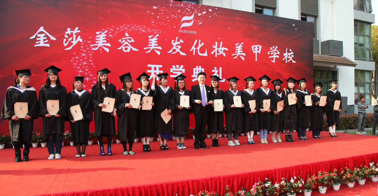 2013年4月12日下午2点30分,苏州金莎美容美发化妆学校400名师生兴高采烈、精神抖擞地汇聚于学校内广场。随着以班级为单位的八个方阵集合完毕,在全体老师欢快的载歌载舞中拉开了开学典礼的帷幕。