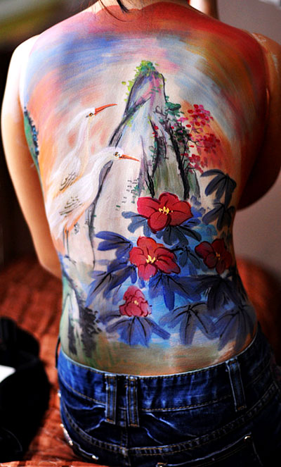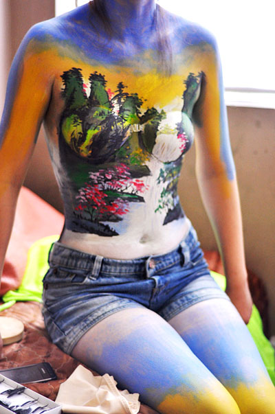 在某种意义上,人体彩绘就是要给我们的视觉和心灵来一次强大的冲击力,我们呼唤美,我们需要拓展美的领域,面对“赤裸的真实”,人们只有有了足够的勇气,才是打破了传统与禁忌,创造了对美的最大肯定和领会的自由空间。而人体彩绘师则从专业的角度,对这门新兴的艺术谈了他们独特的见解。北京工艺美术学院的青年教师王羽就说:“人体彩绘并不单纯只是创作技术,而是一种美学观念和态度……单纯把人体当画布、画板来创作的话,那人体彩绘就会失去它的意义,真正的人体彩绘,必须根据人体曲线、身体架构、模特的肢体语言,去表达作品内容,单在画布上是不可能表达这种内容的,所以,这是一种更多内涵和更高难度的双向艺术创作。”