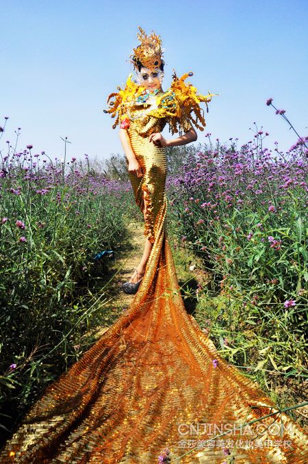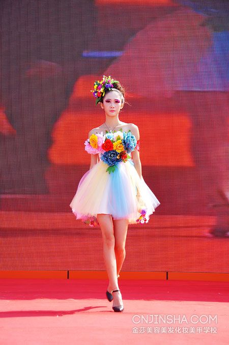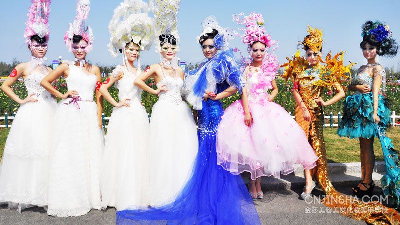 2014年10月3日10:00金莎时尚彩妆美甲发布会在盐城大丰荷兰花海拉开序幕。当天发布会一众靓丽的模特闪耀全场。而在这绚丽多彩的背后是盐城金莎的师生为之默默奉献。发布秀上所有模特妆面清新,缤纷耀眼,无处不散发着青春的活力。其中记忆犹新的是金龙风舞这一款造型,模特在阳光的照耀下犹如晨曦女神,阳光般金灿烂而华贵的笑容,柔和且富有层次感的风尾在双肩好似涟漪的微澜袅袅摆动,触动心弦,凤尾裙摆夸张纤长,拉长了等待的眼神,营造出跃跃欲上的视觉冲击。