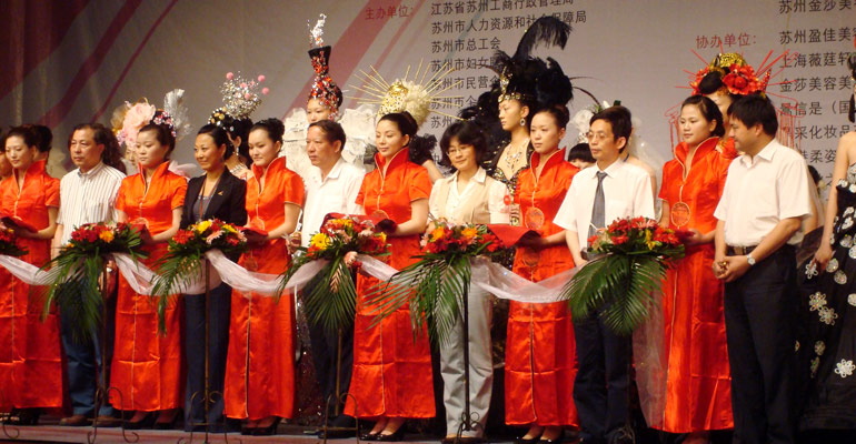 在这个骄阳似火的夏日,金莎美容美发化妆学校度过了自己的15周岁生日,在这个铄石流金的夏日,“2010第三届中国•苏州美容文化艺术节”于6月28日在苏州市科技文化艺术中心获得圆满成功。盐城金莎美容美发化妆学校秉承“以德化人传美誉,以技育人立潮头”的办学宗旨,作为唯一代表盐城参加大赛的美容美发学校,在近300名的参赛者中脱颖而出。其中报名参赛14人,获奖11人,金奖4人,银奖2人,铜奖5人,取得了丰硕的成果。盐城金莎向省内外充分展示了我市美容美发行业的风采,彰显优势、宣传品牌,将盐城美容文化的时尚、健康和美丽,一贯的高贵的品质回馈给了行业公众。让我们以高昂的斗志,饱满的热情迎接下一次的挑战。