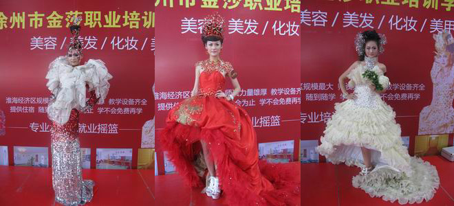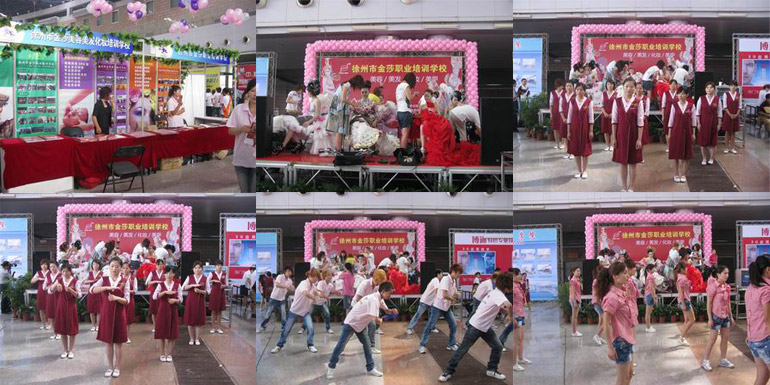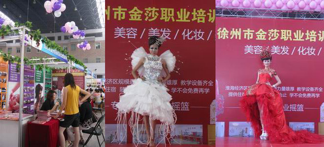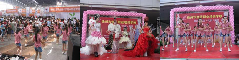 2010年7月3日,中国淮海职业教育节在徐州市会展中心隆重举行。徐州市金莎职业培训学校以“凸显技能培训 保障学员就业”为主题,吸引了众多的应届初高中毕业生和家长的关注,很多学员现场就到金莎学校参观报名。金莎学校在展会现场设立了技能展示区,美容、美发、化妆各专业的学员纷纷上台展示自己的技术,成为了全场的亮点,吸引了众多的参会者的关注。