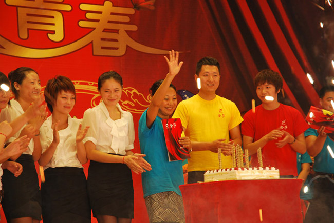 金莎人正用特有的热情点燃我们金莎16岁的生日蛋糕。450名金莎人、16名与金莎同一天生日的金莎人在董事长蒋敏小姐的生日祝词,点燃了金莎的生日蜡烛,伴随着《Happy Birthday!》音乐声的响起,大家一起许下了450个童话般的愿望。