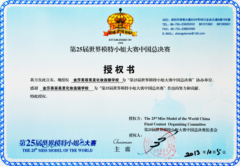 • 金莎学校为第25届世界模特小姐大赛中国总决赛提供化妆造型服务