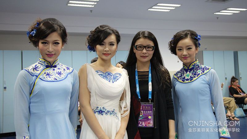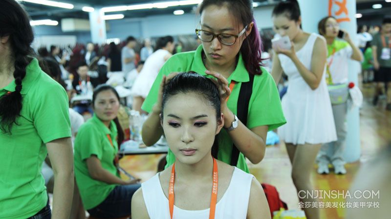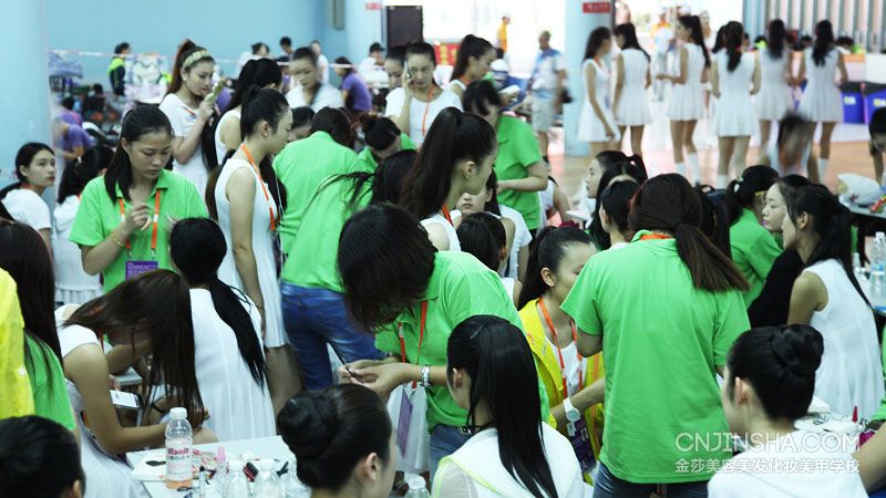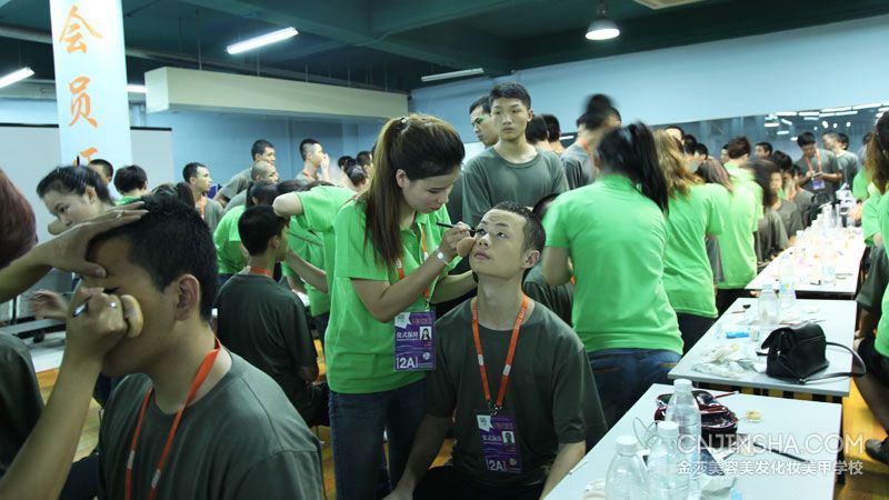 而在这绚丽多彩的背后,有无数的无名英雄为之默默奉献。金莎400多名师生组成的化妆师团队就是这样的一群人,在规定的时间内,她(他)们平均每个人要完成10名演员的化妆造型任务,在保证数量的情况下又要达到组委会、节目组的要求,这对很多化妆师来说是一个新的考验。